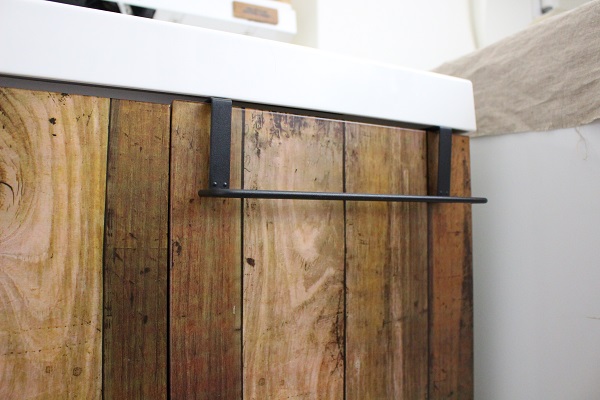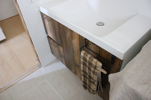 アイアン風のタオル掛けに合わせて、細めのカスガイにしました。