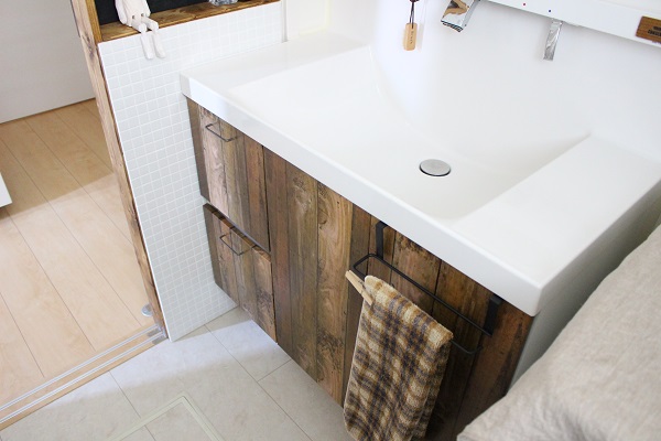 前のおうちの洗面所改造DIYでも、カスガイ使ってます(´▽`)