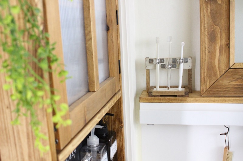 100均で手軽に手に入る木材と、あの多機能タイルを使って、歯ブラシスタンドをDIYで作りました。