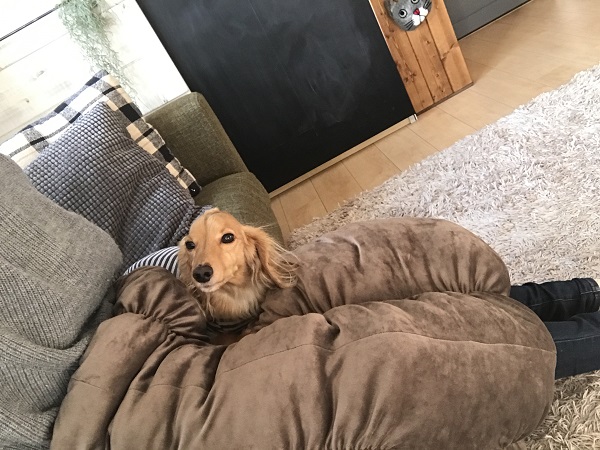 私がこれ着て(着るという表現でいいのか)座ると、ここぞとばかりに来ます、この方。