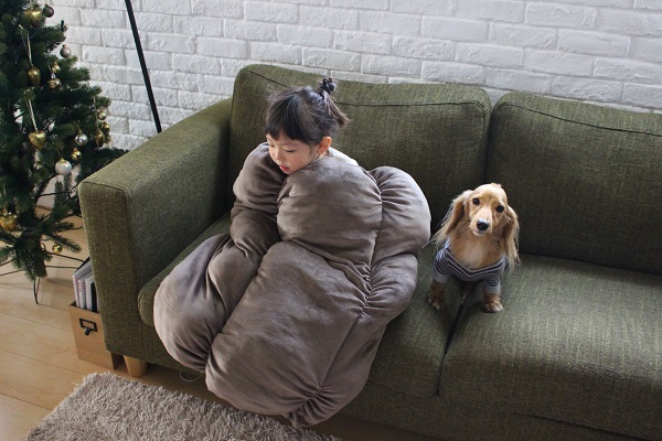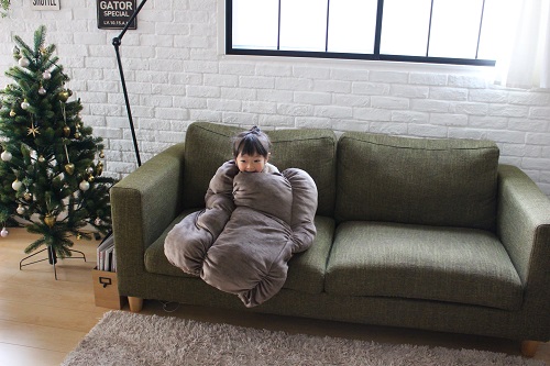 私がこれを着て(履いて?)座っていたら、娘もモヒも中に入ってこようとする。笑