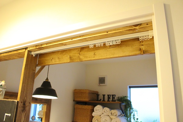 ですが、突っ張り棒にカーテンを吊るすだけではうーーん。ちょっと物足りないなと思って、