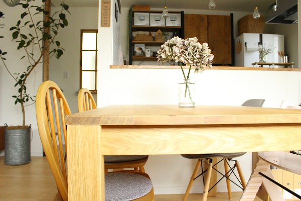 見た目にもちょっとチープ感があるなぁ・・・と思い始めていたのと、若干サイズが小さめだったのと、ゆくゆくはダイニングテーブルで子供が勉強したりするということもあると思うので、