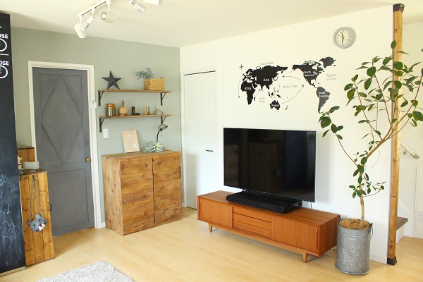 テレビの上に貼ってある世界地図は、