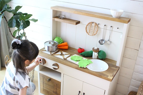 6月に販売開始予定の「Chairs and.×マルトク 木製2WAYままごとキッチンDIYキット」