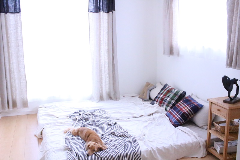 今まで使っていた遮光性の高いカーテンと違って、光が程よく差し込むリネンの生地なので、