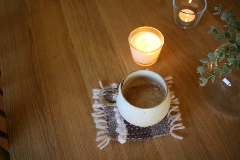 これを朝、まだ薄暗い中、テーブルの上で灯してみました。
