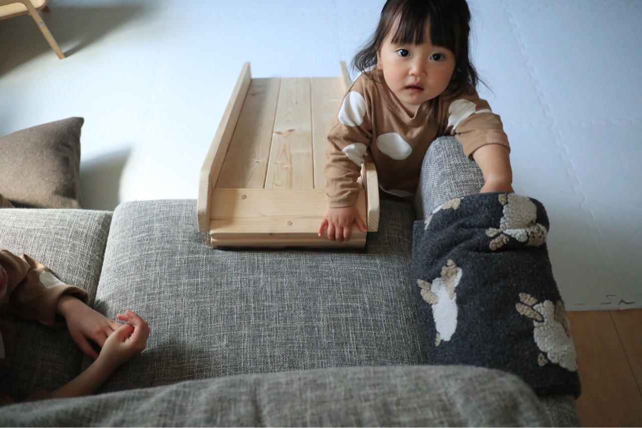 子供たちと少しでも部屋の中で楽しくすごしたい!と考えていた時、ふと思い立って、おうちの中でも遊べるすべり台を作ってみました。