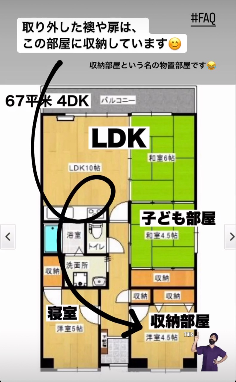 我が家は表記上「4DK」なのですが、一部屋を「収納部屋」(という名の物置部屋)として使っています^^